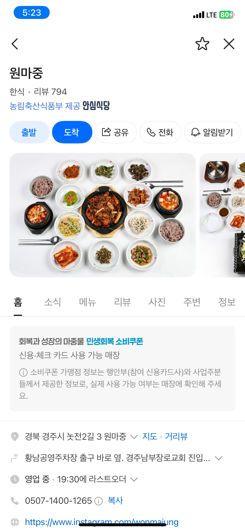 경주에는 유명한 맛집이 많지만, 원마중 식당은 조용하고 편안하게, 그리고 진짜 맛있게 먹을 수 있는 곳이라 더욱 특별하게 느껴졌습니다.