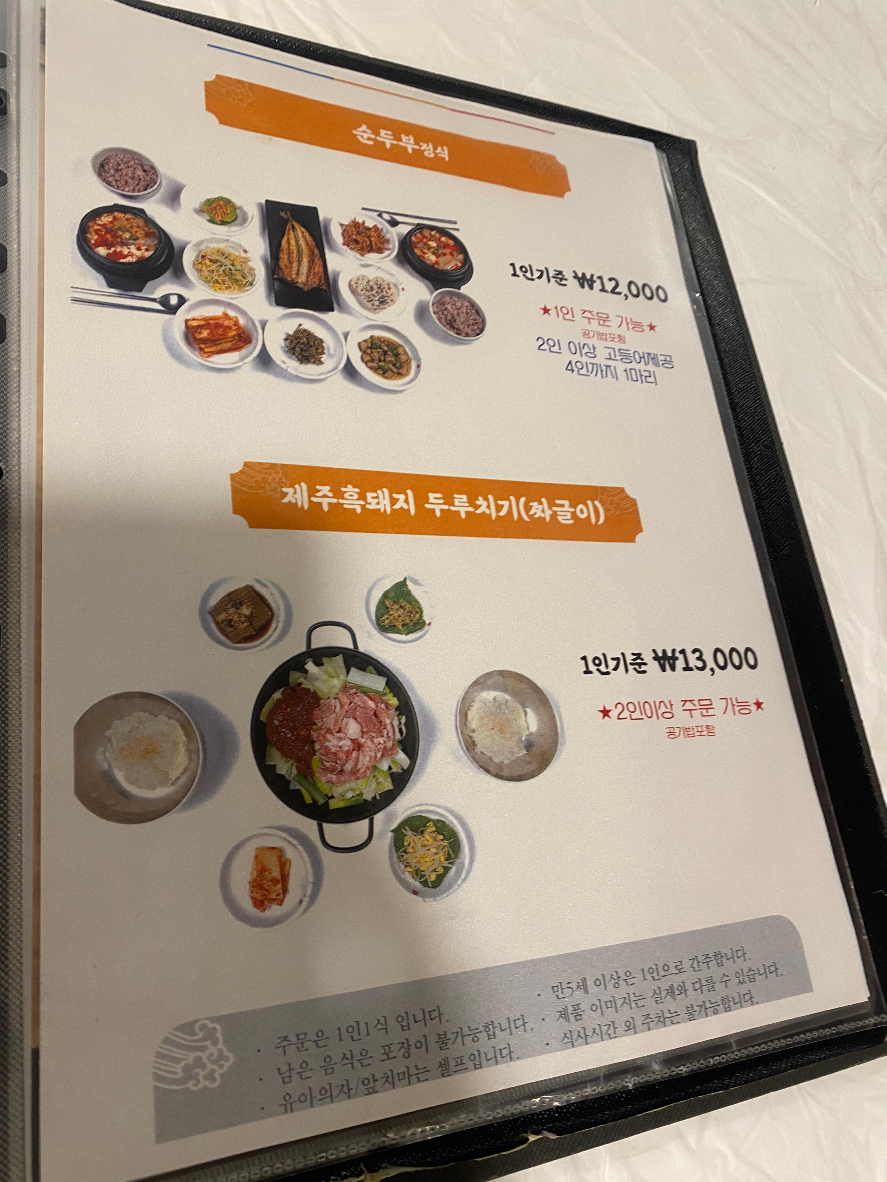 순두부를 시키고 손두부를 시켜서 먹어보았습니다.